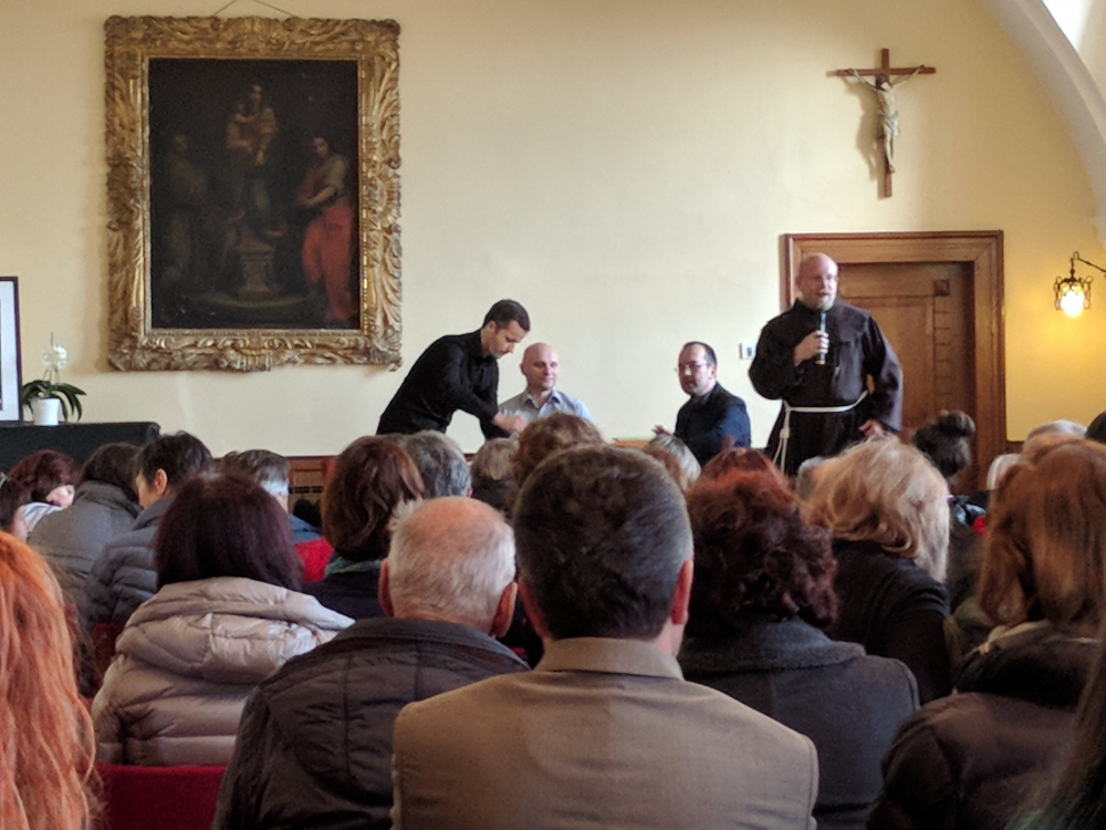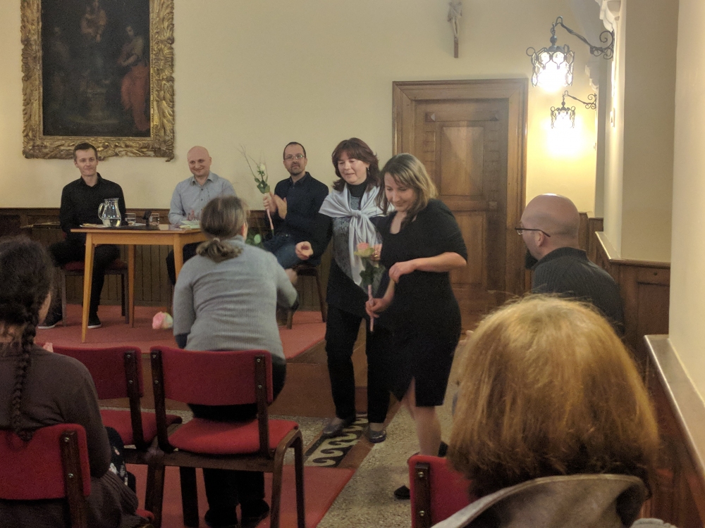V sklopu Škrabčevega leta in kot preddogodek festivala Mesto knjige je v ponedeljek, 12. 3. 2018, v samostanski dvorani Kostanjevica nad Novo Gorico potekal pogovor z dr. Kozmo Ahačičem v organizaciji Frančiškanskega samostana Kostanjevica, Slavističnega društva NovaGorica in Društva humanistov Goriške.