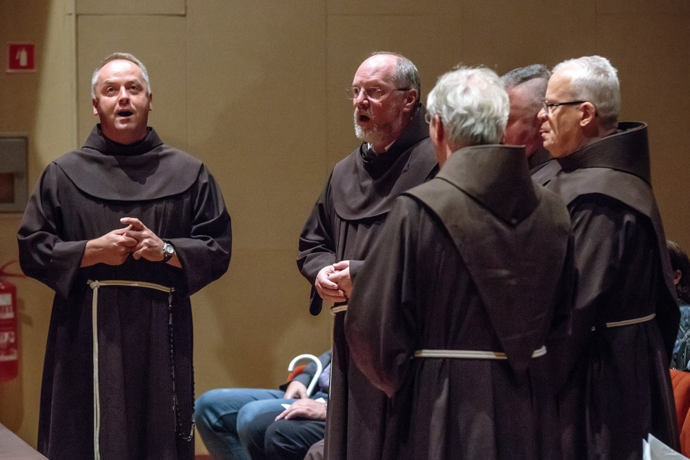 Frančiškanski bratje: provincial p. Marijan Čuden, br. Ambrož, p. Miha Vovk, p. Simon Peter Berlec, p. Edvard Kovač in p. Niko Žvokelj so prosto zapeli žalostinko Ultima -.Ko bo zadnja ura bila: